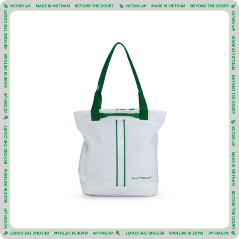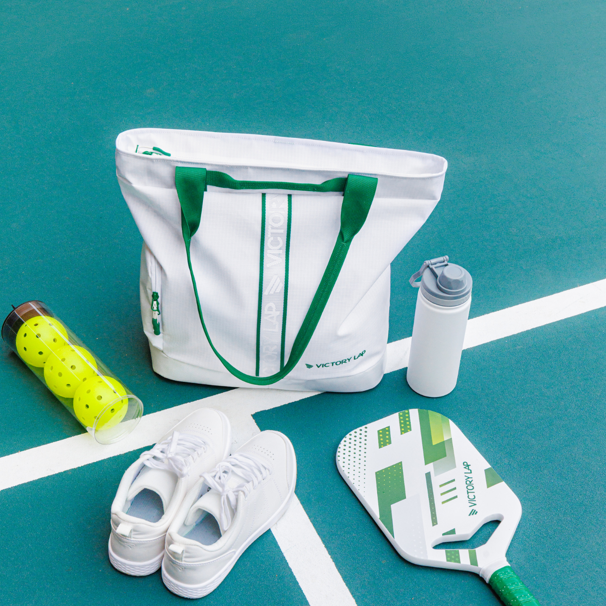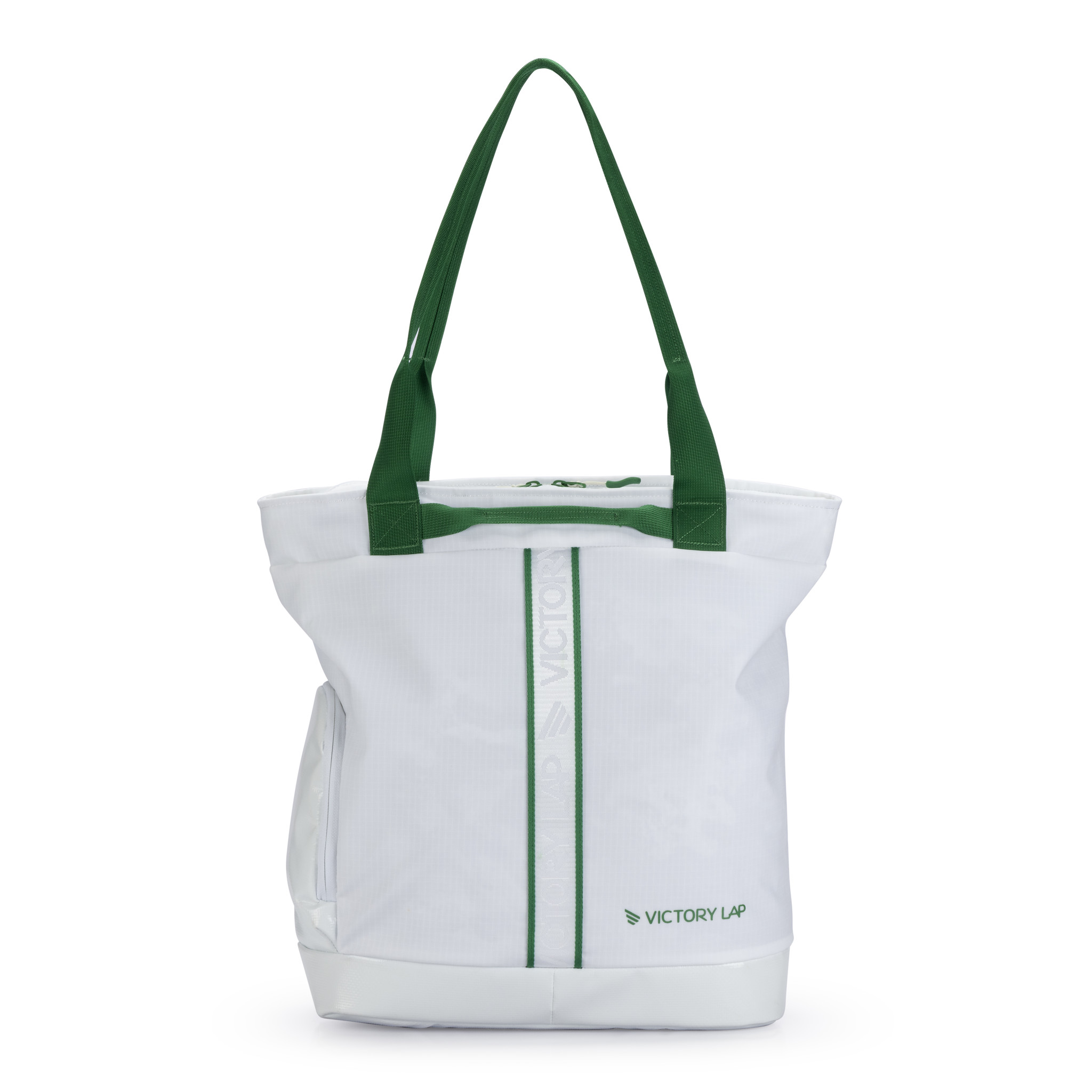 - The Victory Lap Tote Bag is designed for those who appreciate style and sophistication in sports. Its sleek rectangular shape offers a balanced size that’s compact yet easy to carry.