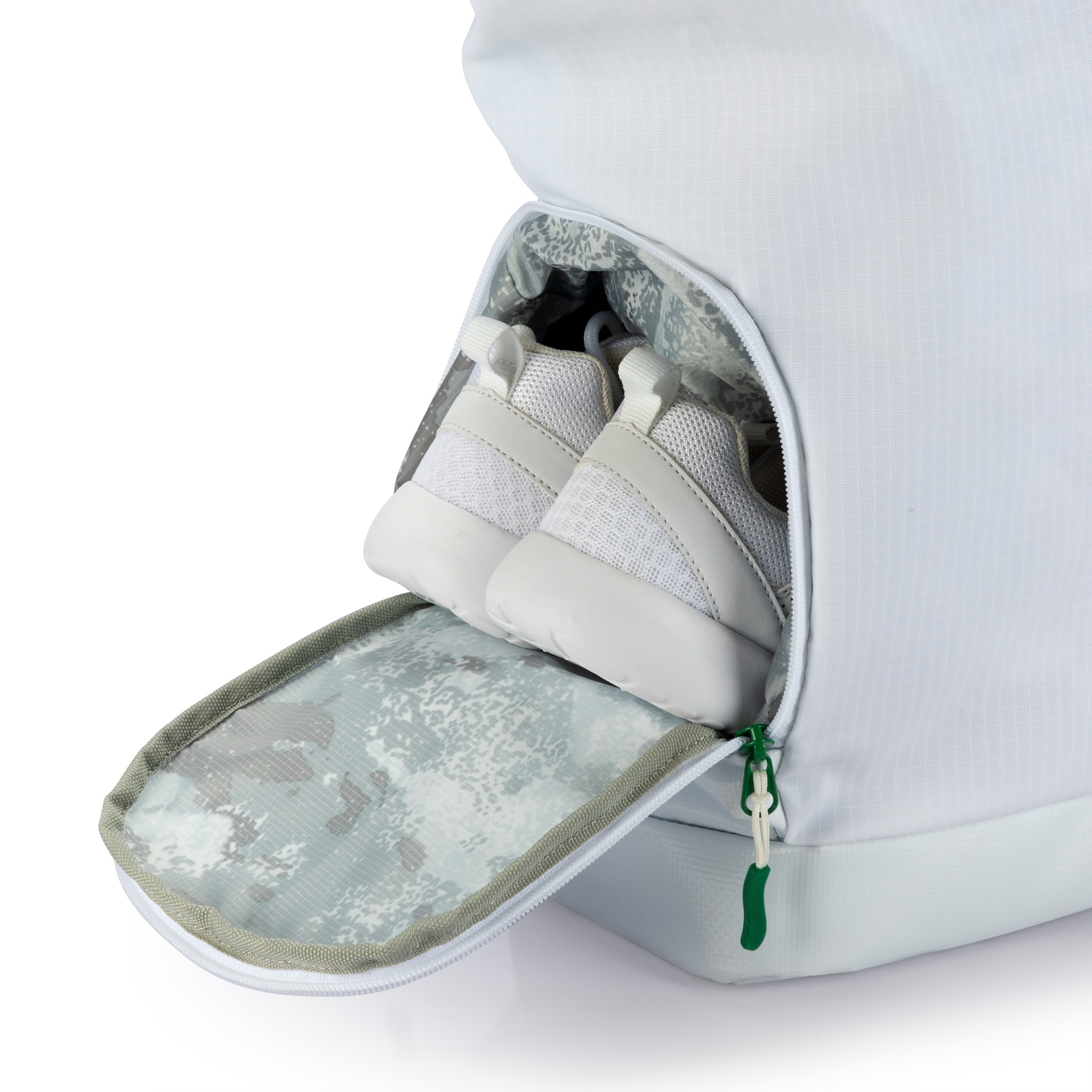 - A separate side pocket provides a hygienic and convenient space to store shoes or wet clothes.